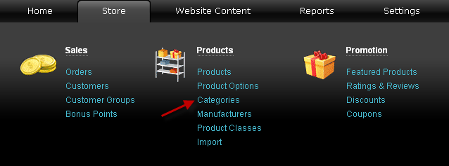Aller au menu Boutique - Produits et cliquer sur le lien Catégories.
