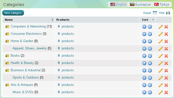 Vous pouvez créer de nouvelles categories de produits et ajouter des sous-catégories. Vous avez la possibilité d'optimiser les pages pour les moteurs de recherche en ajoutant des mots-clés 'SEO' et une description, créer une disposition personnalisée, ajouter des images à chaque catégorie et sous-catégorie.Voir détails dans l'article Categories.