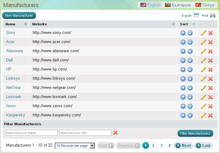 Vous pouvez créer une liste des fabricants avec lesquels vous allez travailler. Vous pouvez également mettre des liens vers des sites Web des fabricants. Voir détails dans l'article Fabricants.