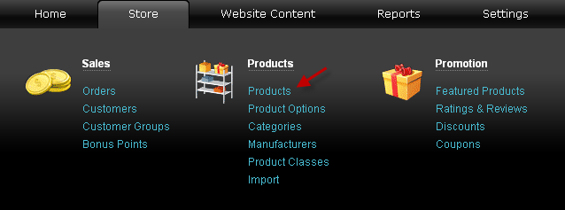Aller au menu Boutique - Produits et cliquer sur le lien Produits.