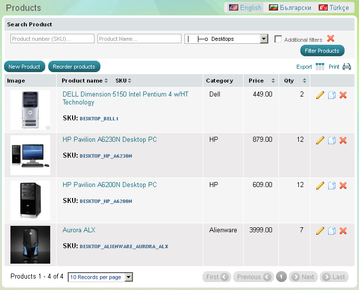 Vous pouvez ajouter un nombre illimité de produits, écrire une description en plusieurs langues, ajouter autant de photos de produits que vous le souhaitez, ajouter un produit dans plusieurs catégories, attribuer des options d'un produit, appliquez des prix de gros et bien plus encore. Voir détails dans l'article Ajouter produits.