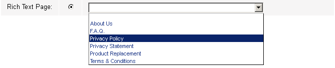 Utiliser le bouton radio "Pages texte enrichi" et sélectionner une page de la liste déroulante des pages existantes.Si vous n'êtes pas satisfait de la liste disponible des pages, vous pouvez créer une nouvelle page, puis revenir au menu et ajoutez-la.