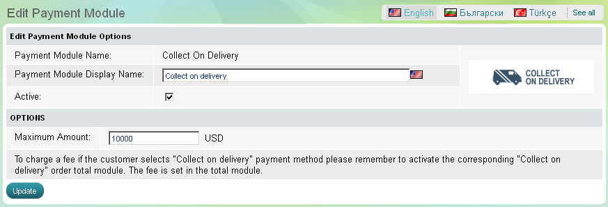 Trouver "Collect on delivery" et cliquez sur le lien "Options" à la fin de sa rangée.