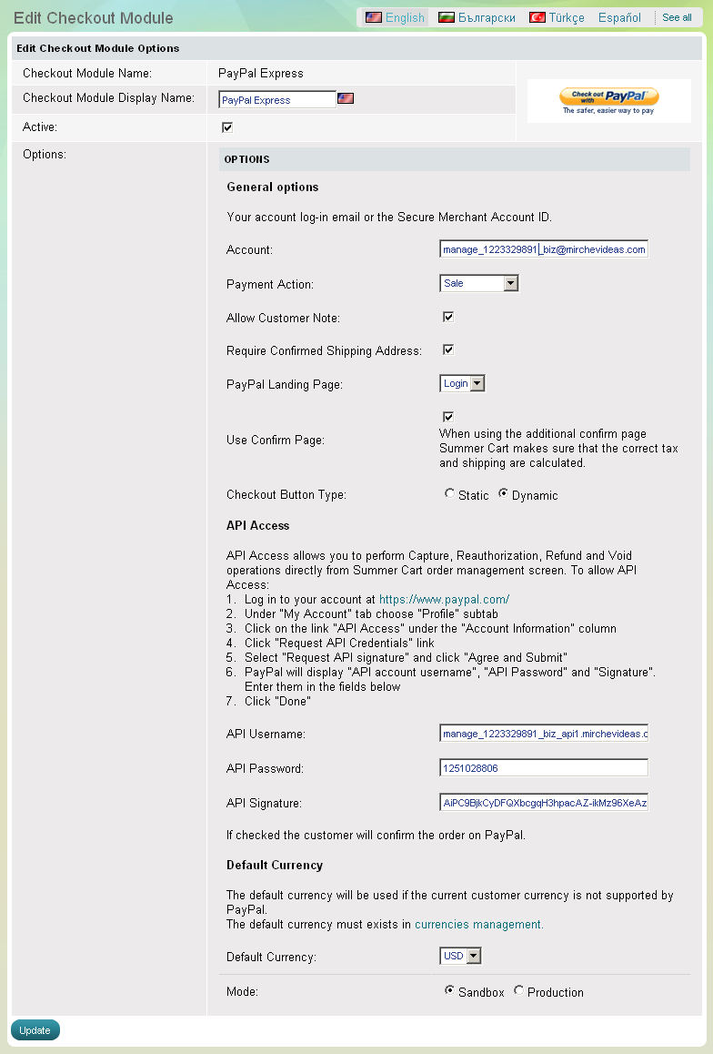 Summer Cart prend en charge PayPal