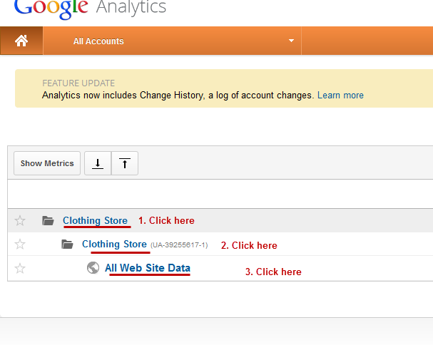 Note: if you would like to get reports for number of sales, click-through rates and conversion rates for your store, you need to get and install "Google Analytics Ecommerce tracking" Plugin. Contact our sales team for more information.