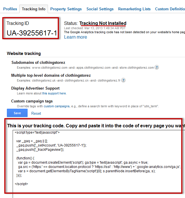 At the top you see your Tracking ID. You are going to need it later. On the right you see there is no active tracking at the