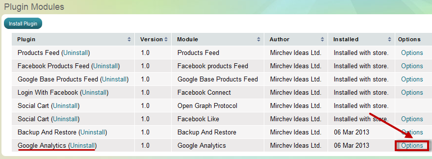 On the list of plug-ins, locate “Google Analytics” and click
