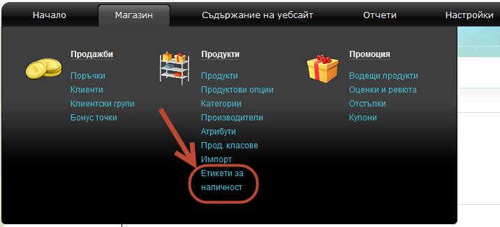 За да ги достъпите трябва да отворите "Магазин" - "Етикети за наличност".
