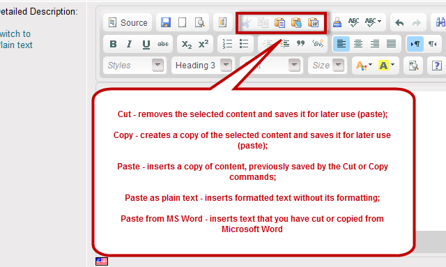 3. You can use the WYSIWYG editor to enter brief or detailed product description, so click one of the options