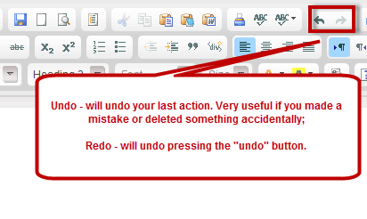 Undo - will undo your last action. Very useful if you made a mistake or deleted something accidentally.