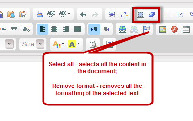 Remove format - removes all the formatting of the selected text