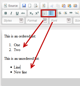 Ordered list - click this button and it will assign an incrementing number to each new line