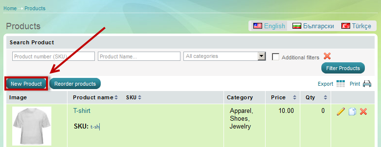 2. Click New Product
