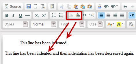 Decrease indent - decreases text indentation