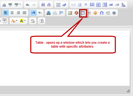 Table - opens up a window which lets you create a table with specific attributes.