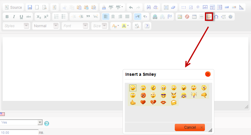 Smiley - opens up a window with a selection of smileys to choose from. Single-click the one you have selected and it will be added to the text.