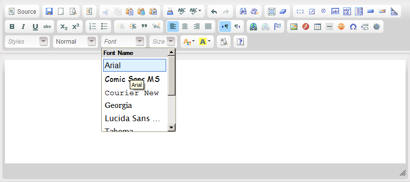 Using the WYSIWYG editor enables you to create the look and feel of the page by choosing different fonts, font sizes, font and background colors and embedding different elements.