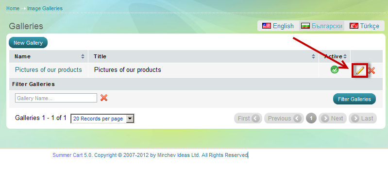 3. Choose the gallery that you would like to add images to and click ![]()