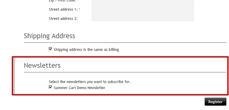 - they can subscribe to a newsletter when registering an account at your store;