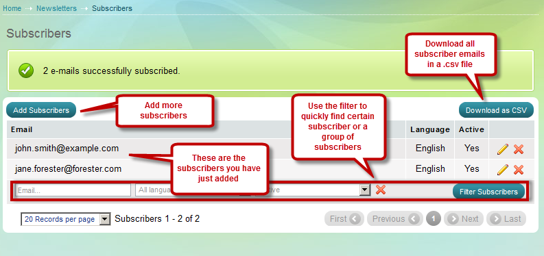 You have now added two new subscribers, this is the result