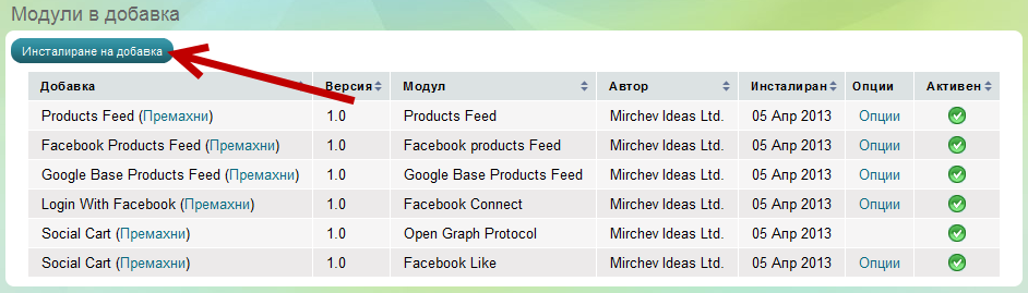 Съвет: Силно препоръчително е, преди да инсталирате дадена добавка, да проверите в списъка дали тя вече не е инсталирана.