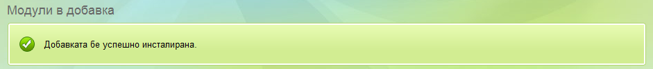 След това системата ще инсталира добавката и ще покаже следното съобщение: