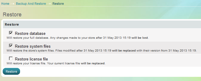 Важно е да отбележим, че всички промени, които сте направили по магазина след момента на създаване на архива, ще бъдат изгубени при възстанвояването му.