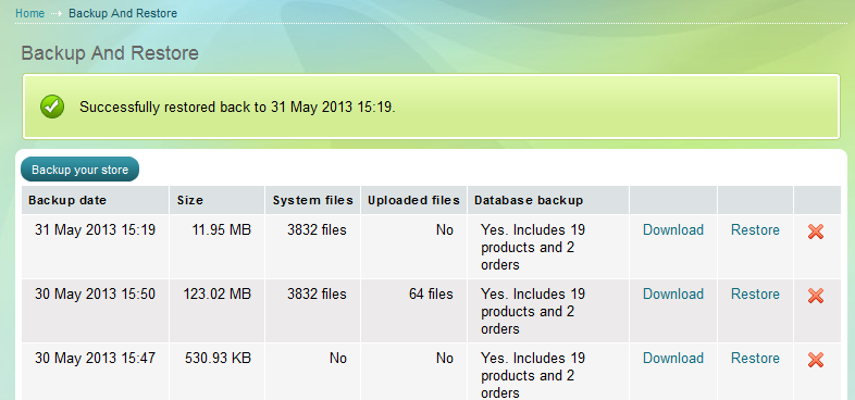 И по същия начин, чрез натискане на Restore можете да възстановите магазина си.
