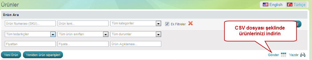 Ürünlerinizi sadece güncellemek isterseniz ürünlerinizin güncelbilgilerini barındıran CSV dosyasını "Mağaza" >> "Ürünler" >> "Gönder" yazısına tıklayarak alabilirsiniz.