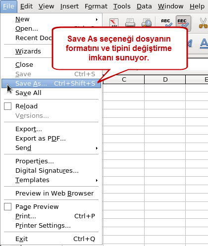 2. Dosya biçimini ve türünü değiştirmek için menü "File" >> Save As seçmemiz gerekiyor.