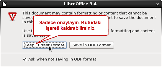 5. „Keep Current Format" tıklayarak değişikliği onaylayın.