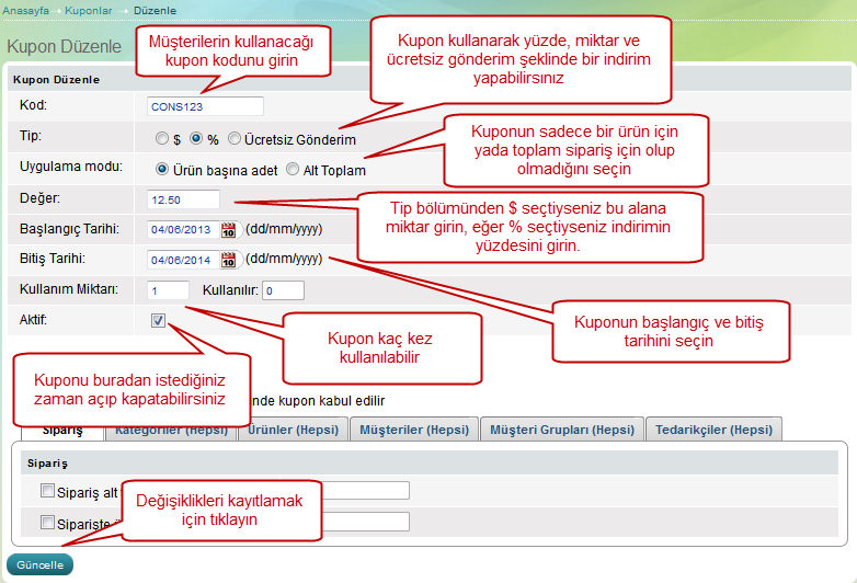 Kupon Düzenleme