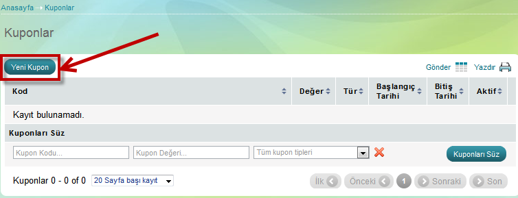Sadece aktif durumda olan kuponların müşterileriniz tarafından kullanabilineceğini unutmayın.