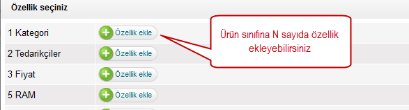 Özellik eklemek için "Özellik Ekle" butonunu kullanın. Daha sonra yeni özellik eklemek için bir önceki adımı tekrarlamanız gerekiyor.
