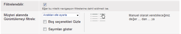 Gürüntülemeyi filtrele" diye ek bir seçenek gözükecek ve özelliğin tiğine göre farklı şekilde görüntülenebilir. Her tipin görüntülenmesi için en az bir değişken bulunmakta ve sağındaki simge ile temsil edilebilir.