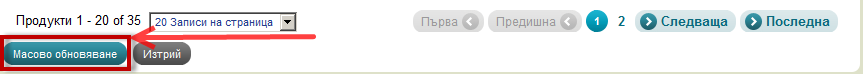 - Изберете продуктите, които искате да редактирате и натиснете бутона за Масово обновяване