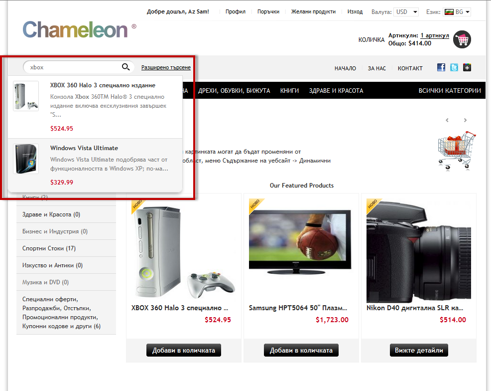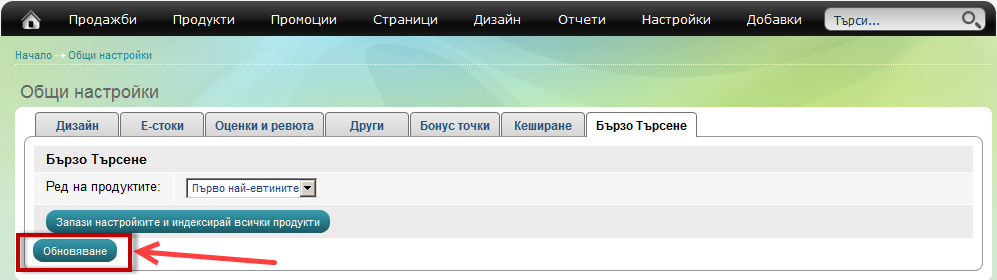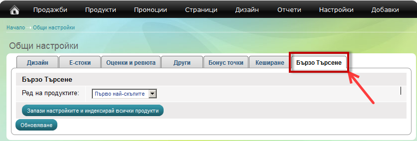 - Настройкатата на Бързо Търсене на продукти може да направите от административната област на магазина Ви.