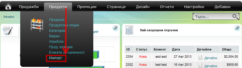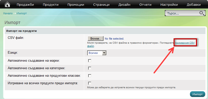 Отидете на меню Продукти и кликнете на Импорт: За да сте сигурни, че правилно въвеждате информацията ...