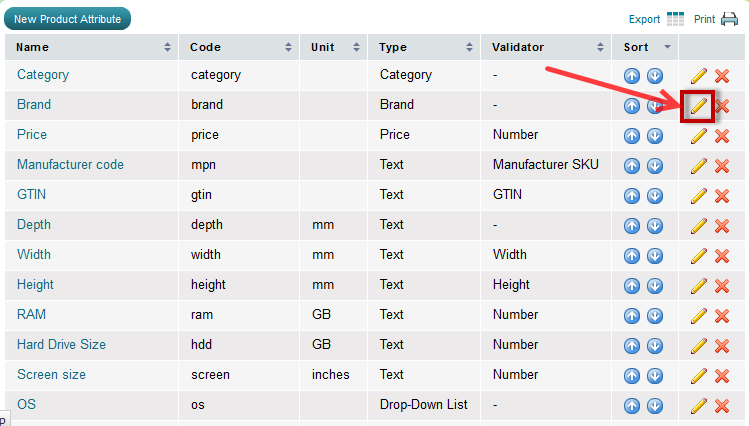 - От менюто изберете атрибута, който искате да добавите, като кликнете бутона за редактиране :