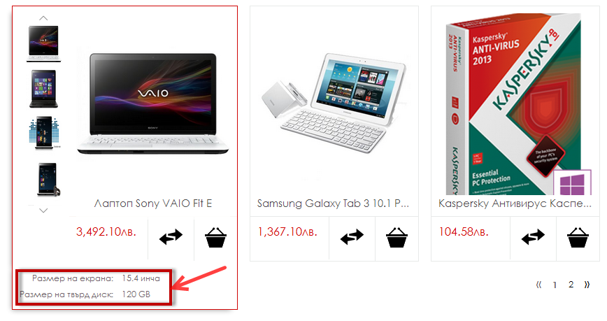 Добавяне на атрибути в преглед При посочване на продукт