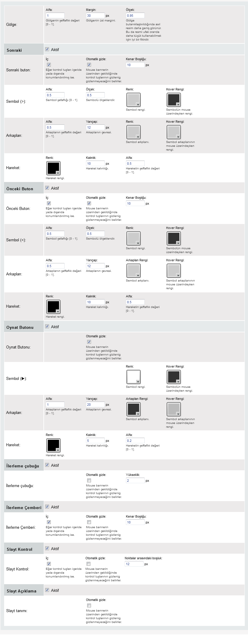 Otomatik gizle - fare resmin üzerindeyken kontrol butonlarının görünüp görünmeyeceğini belirleyin.