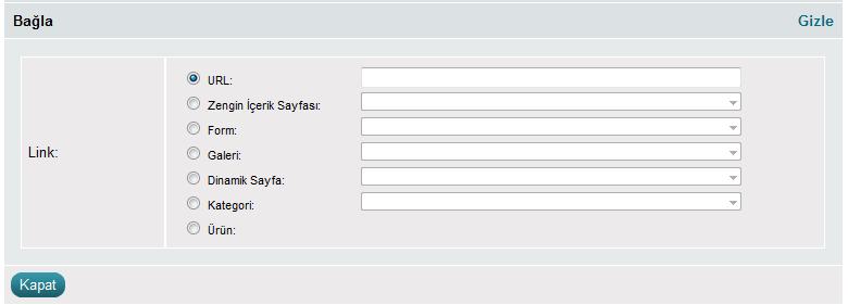 Dinamik Sayfa - açılır listeden bir dinamik sayfa seçin. Bannere tıklandığında o sayfa açılacak.