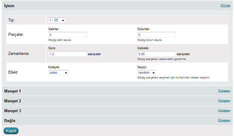 Otomatik Oynatma - eğer bu kutuyu işaretli ise bannerdeki resimler otomatik olarak değişecektir.