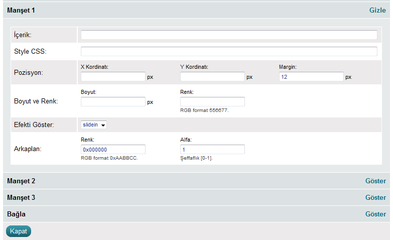 Manşet 1, Manşet 2, Manşet 3 - Bu resimde görüntülenecek 3 metin girebilirsiniz.