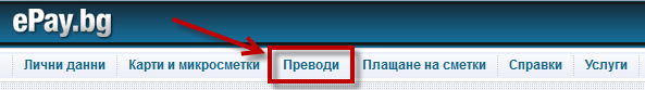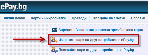 3 Изберете "Изпрати пари на друг потребител в Epay.bg"