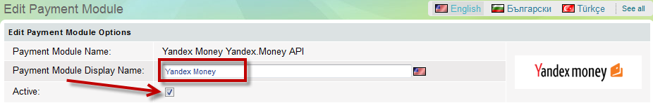 За име, сложете това, което клиентите ще виждат при избор на този модул за плащане. Сложете отметка, за да бъде активен модула.