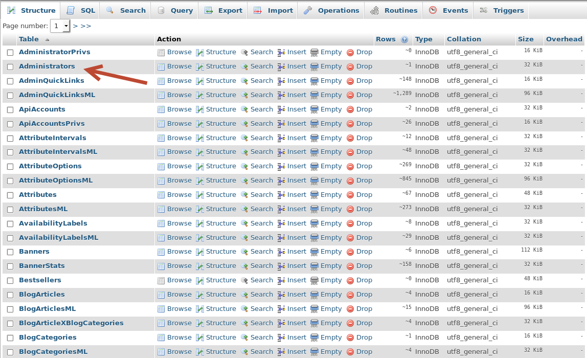 2. Натискате върху таблицата "Administrators". Ще видите списък с всички администраторски потребители.