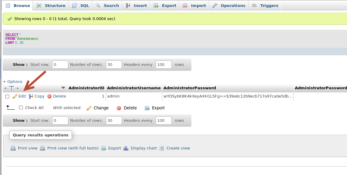 3. Натискате на "Edit" в съответния ред на потребителя на който искате да му смените паролата.