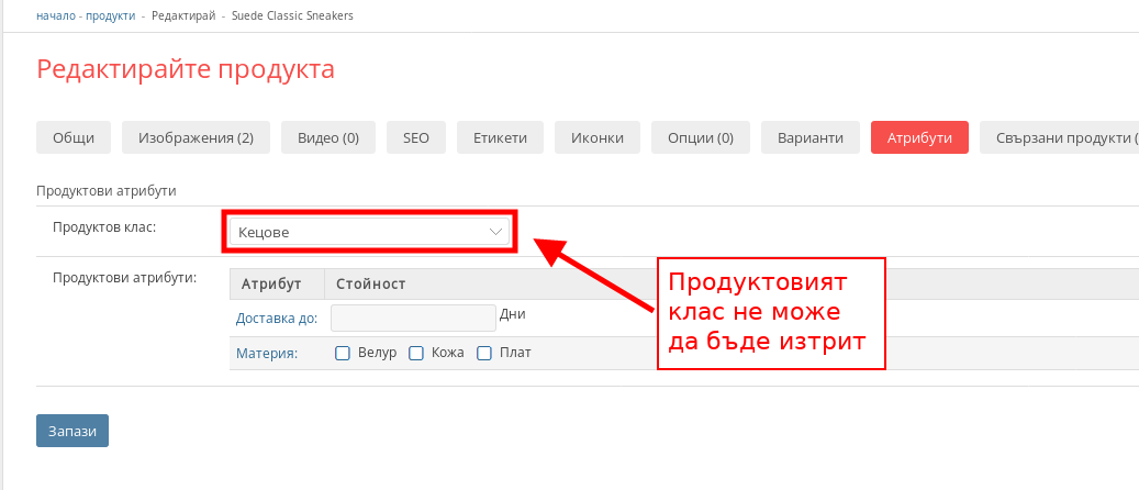 След като знаете как да създадете и редактирате Продуктови класове е време да разберете и как да изтриете Продуктови класове. За целта ще използваме Продуктовия клас “Кецове”.