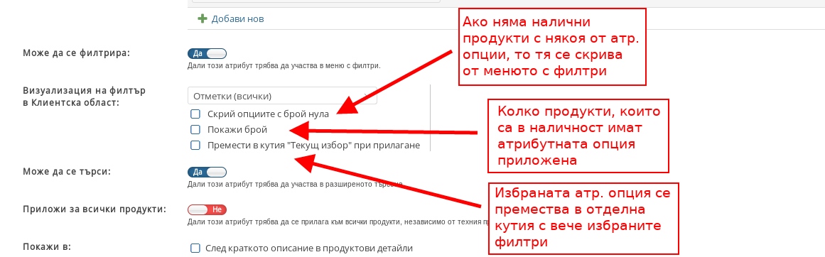 7.17 Покажи Брой – показва колко продукти има в наличност, които имат приложена избраната Атрибутна опция.